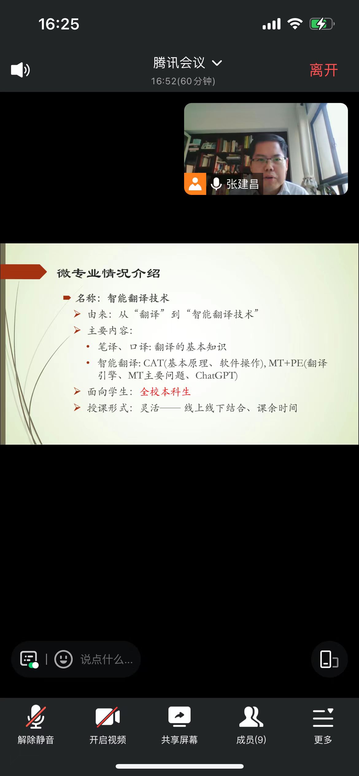 23日下午,公司线上召开微专业建设推进会,就新获批的“智能翻译技术”微专业进行介绍及工作安排。王新平经理、李焱副经理以及微专业建设团队成员参加会议。