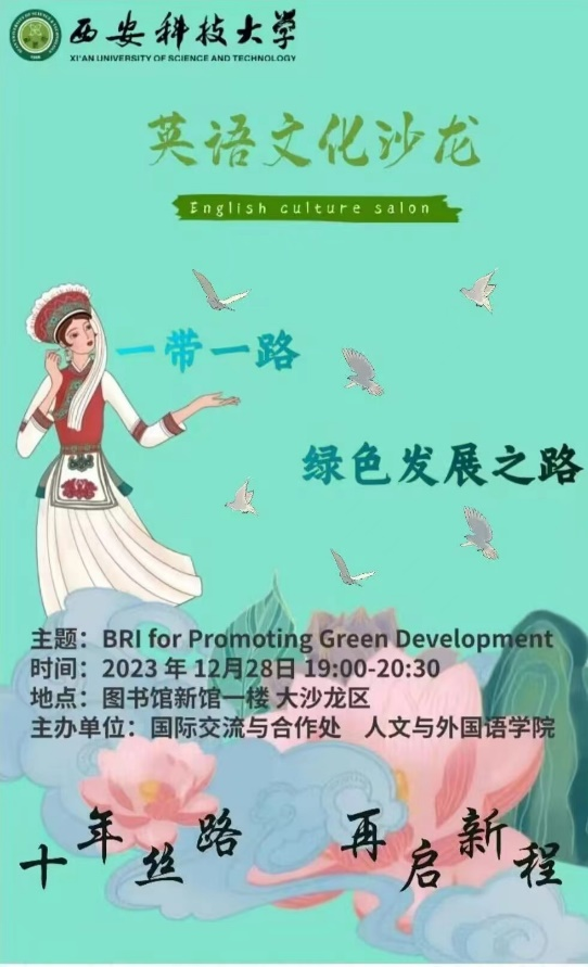 为贯彻落实习近平总书记提出的“一带一路”倡议的内涵,丰富员工校园文化生活,12月28日晚,在临潼校区骊山校园图书馆新馆一楼大沙龙区,ballbet贝博与国际交流与合作处联合举办“十年丝路,再启新程”系列英语文化沙龙活动。此次活动的主题为“一带一路——绿色发展之路”。