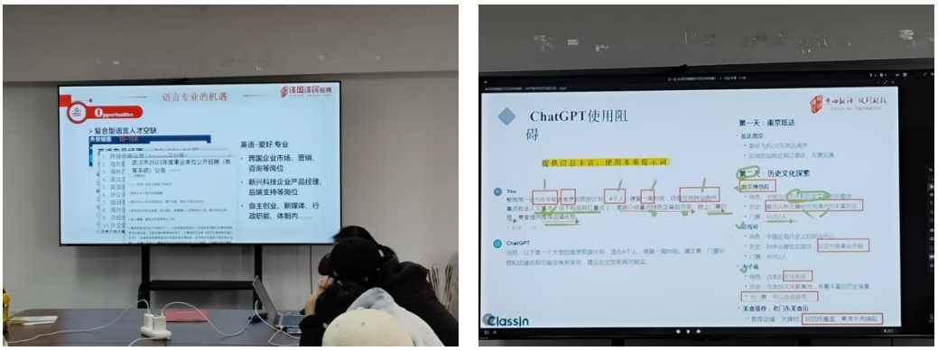 下午,实习生们进入了岗前培训环节,培训内容紧扣行业最新发展动态,尤其是在人工智能时代下,AI工具在语言服务领域的应用。培训的核心部分是对ChatGPT等人工智能技术在翻译及语言服务中的应用进行了详细讲解。员工们了解了如何利用AI工具提高翻译效率,如何通过机器翻译与人工编辑相结合的方式,提升语言服务的质量与准确性。通过实际操作和案例分析,同学们亲身体验了AI工具在日常工作中的广泛应用,认识到技术的不断进步对语言服务行业带来的深远影响。
