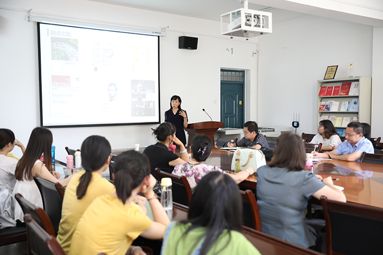 随后,高宝萍、刘媛分别从文学作品翻译、知识产权翻译等两个方向做了精彩的学术报告。高宝萍以具体译文作为引例,结合自己的翻译实践,引申出译者素质这一话题,对同学们表达了美好的祝愿。刘媛针对自己从事的知识产权翻译做了简洁而全面的介绍,从基本概念、现状前景和词汇语法特点等方面做了阐述。通过老师的细致讲解,同学们对公司的MTI科研实力有了更加直观的感受和深入的认识。