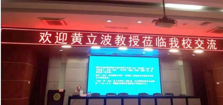 5月26日下午,西安外国语大学外国语言文学研究院经理、博士生导师黄立波教授应邀来公司进行学术交流,作了题为“毛泽东著作‘主义’词的翻译中外对比--基于语料库的考察”的学术报告。ballbet贝博经理师新民主持讲座,公司全体外语教师及研究生参加报告会。