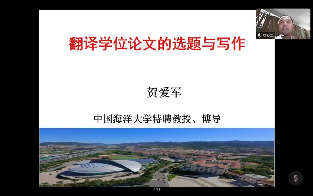 贺教授从学位论文与学术论文的区别切入,结合翻译硕士专业学位论文的写作形式与要求,分别探究了翻译研究论文的写作以及翻译报告的写作。针对翻译研究论文写作,贺教授提出研究论文选题要做到“小题大做”,并提炼出学位论文题目的四种命名方式,针对翻译研究论文写作存在的问题提出了批评与反思,在此基础上全面梳理了翻译学位论文的12个研究领域;针对翻译报告写作,通过比较分析六篇翻译报告目录,为参会的师生提炼出翻译报告写作时的注意事项。