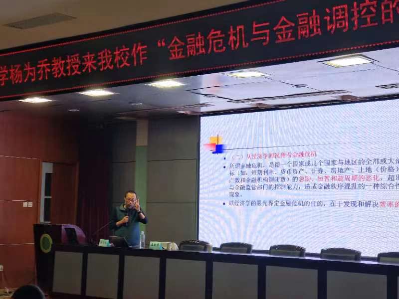 2023年12月29日,ballbet贝博邀请到西北政法大学副教授杨为乔为公司开展主题为“金融危机与金融调控的法治思考”的学术讲座。本次讲座由副经理张辉主持,法学系2000级、2021级、2022级、2023级本科生,法学系孙曼曼、王莉敏、杨曙、廖华教师等参加了讲座。