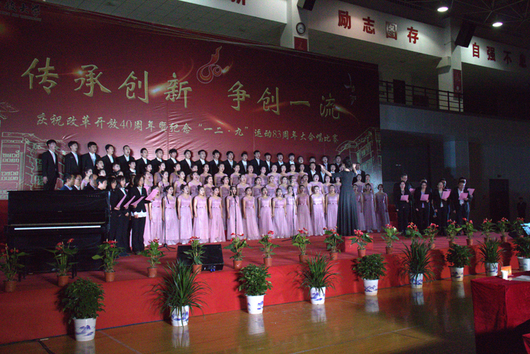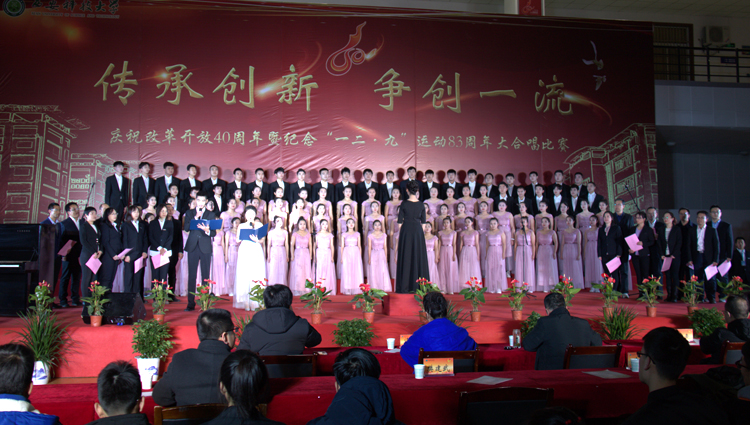 近日,ballbet贝博martini以“传承创新,争创一流”为主题的庆祝改革开放四十周年暨纪念“一二·九”运动八十三周年大合唱比赛在临潼校区骊山校园体育馆隆重举行。经过激烈角逐,ballbet贝博和理公司联队获得三等奖。