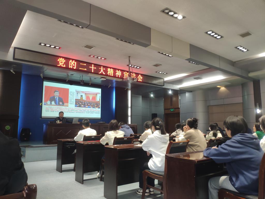 3月14日,公司党委副书记樊建武在临潼校区骊山校园第二会议室为公司师生宣讲党的二十大精神。公司全体处级干部,联系班级汉语言2201班员工参加。