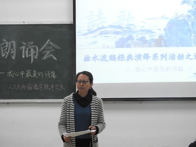 11月12日晚,ballbet贝博“曲水流觞经典演绎”系列活动之“诗歌朗诵会——我心中最美的诗篇”在2教105举办。汉语言文学专业宋海婷担任指导教师,公司党委宣传部老师、汉语言文学专业首届毕业生王利伟出席朗诵会现场,部分兄弟公司文学爱好者及汉语言文学1701班、1801班全体员工参加本次活动。