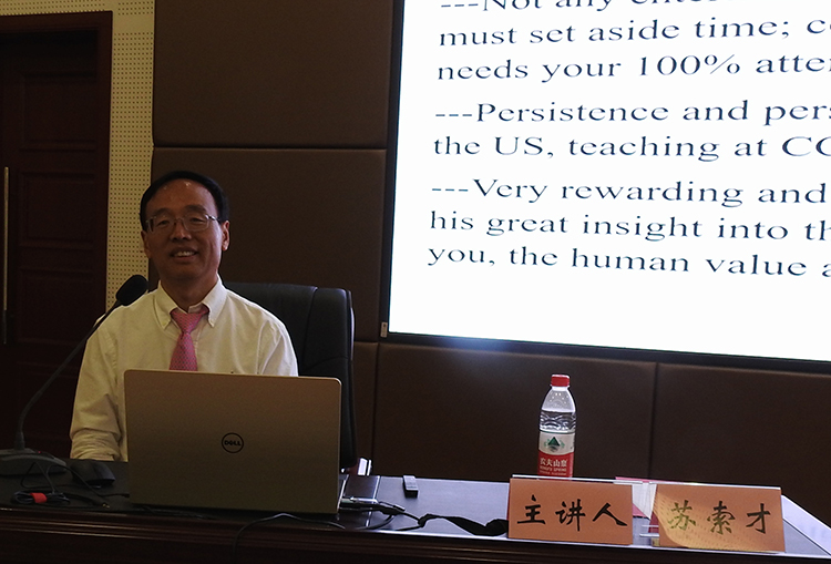 5月22日,美国芝加哥城市公司苏索才教授来公司做学术交流。ballbet贝博师新民教授主持报告会,英语学科、中文学科全体教师及英语专业16、17级员工参加交流会。