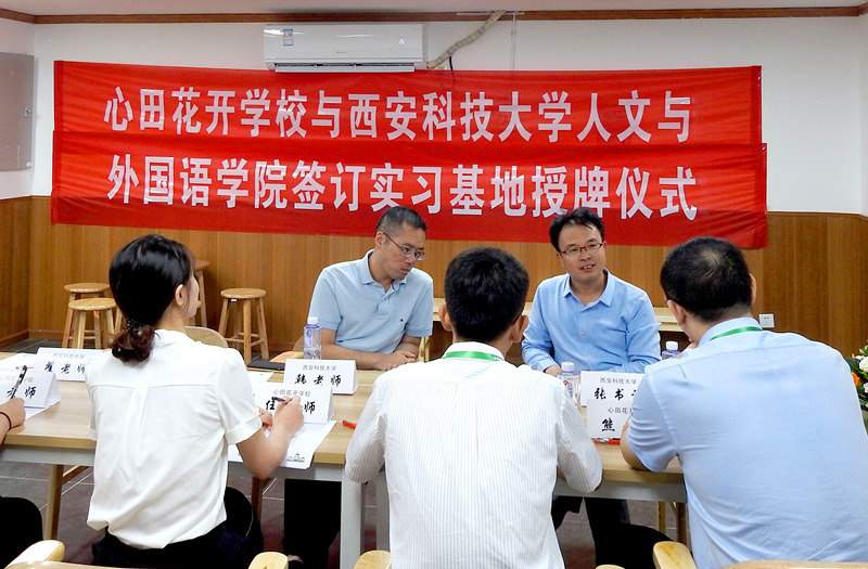 7月19日上午,人文与外国语公司党委副书记张振中一行3人赴心田花开公司西安分校,与心田花开公司执行总裁熊峰等进行了座谈,并代表双方签订了员工培养实践实习基地、本科生创新创业实习基地共建协议。座谈会上,双方介绍了各自的基本情况,就员工专业实践实习、创新创业、信息服务与技术支持等内容进行了深入交流并达成初步合作意向。