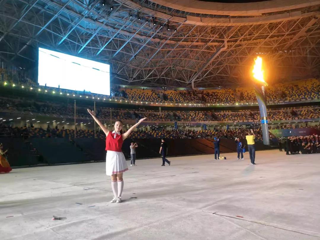 编者按:中华人民共和国第十四届运动会落幕了,赛场上有着许多激动人心的时刻,苏炳添再次创造全运会新纪录,马龙惜败于广东选手樊振东……全运风云一场更比一场激烈。在这场充斥着汗水与拼搏的赛场上,不仅有令人欢呼的运动健将,有在背后默默奉献的志愿者,还有这样一群员工,她们作为群众演员在全运会开幕式上展示了当代青年的青春与活力,展现着一种不怕苦、不服输的顽强奋斗的精神。来自ballbet贝博martini人文与国语公司法学2001班的何雨露便是其中一位。