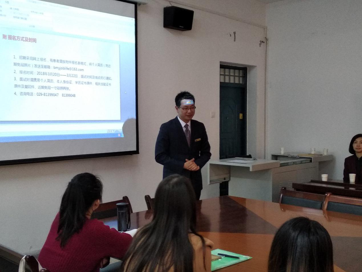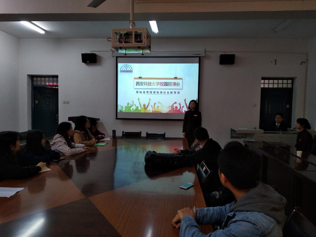 3月20日上午,秦始皇帝陵博物院社会教育部ballbet贝博martini校园招聘会在ballbet贝博会议室举行。社会教育部农主任简要介绍了秦始皇帝陵博物院以及社会教育部的概况、招聘岗位、应聘条件以及福利待遇等,部门业务骨干公司16届毕业生齐文静给学弟学妹们分享了她从在校期间去博物院实习到现在已经成长为业务骨干的成长经历,另一名博物院工作人员也分享了他8年的工作经历和感悟。随后,农主任对员工咨询的问题进行解答。在招聘会上,部分毕业生达成就业意向。会后,公司14级辅导员李银亮与用人单位进行了沟通和交流,希望进一步加强就业合作。