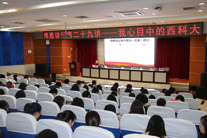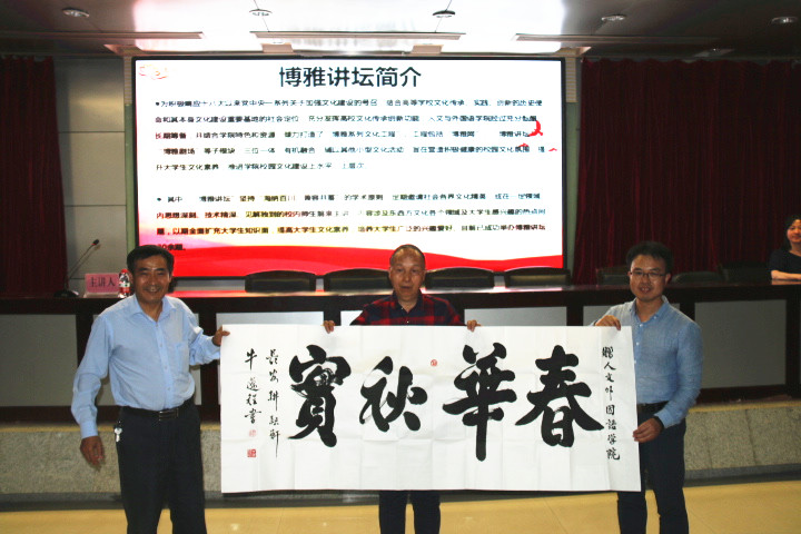 5月31日晚,ballbet贝博系列校庆报告会暨博雅讲坛第29讲在骊山校园图书馆报告厅举行。著名书法家牛迈程应邀作了题为“我心目中的西科大”的报告。公司党委书记苏陆岭、党委副书记张振中及200余名师生聆听了报告,公司团委书记张晶晶主持报告会。