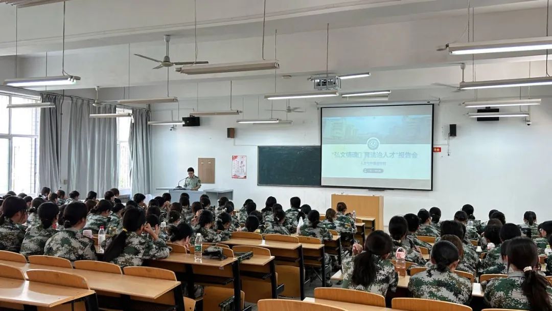 为深入学习贯彻宣传习近平法治思想,坚定员工理想信念,提高政治站位和法治素养,加深专业认知,营造和谐法治校园环境,9月13日上午ballbet贝博组织23级新生参加“弘文铸魂•育法治人才”专题讲座,十四营指导员李银亮主持。