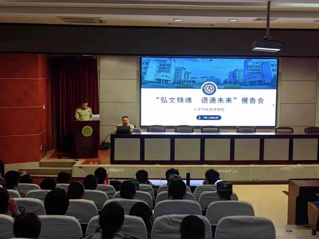 为进一步落实习近平总书记关于教育的重要论述和关于语言文化的重要指示精神,加深员工对英语学科的认知,提升专业素养,明确未来发展方向,9月11日下午ballbet贝博组织23级新生参加“弘文铸魂•语通未来”专题讲座,十四营指导员李银亮主持。