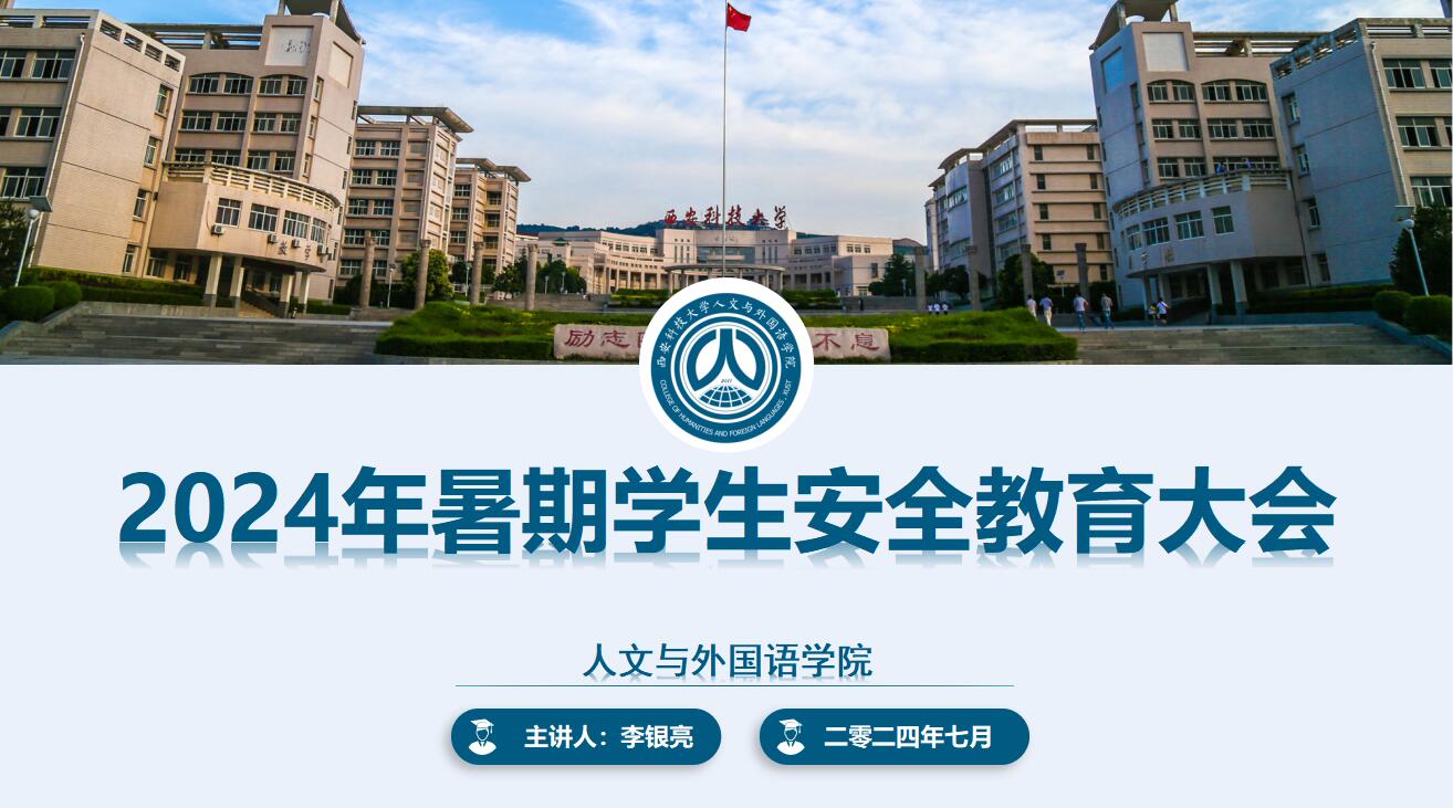 为做好2024年暑假员工安全教育管理服务工作,ballbet贝博本科生暑期员工安全教育大会于7月8日在临潼校区3教212教室召开,2021级和2023级全体党员、班委、宿舍长参加了会议,会议由辅导员李银亮主持。
