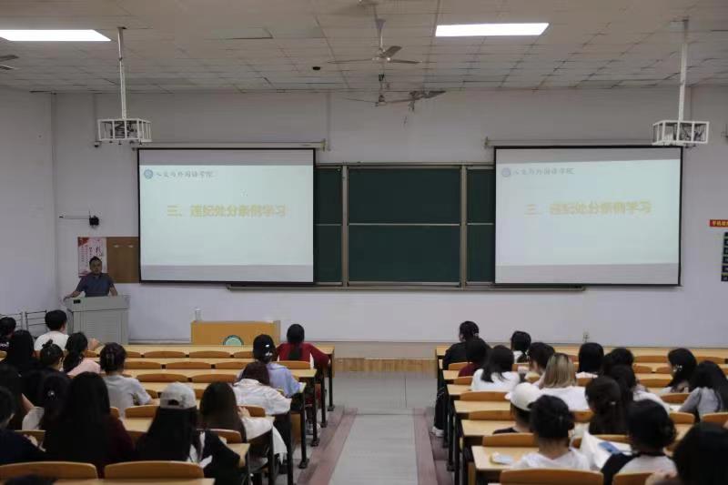 最后,辅导员带领全体员工对《ballbet贝博martini员工违纪处分规定(修订)》进行逐条学习,结合日常发生的案例强调了遵守纪律的重要性,引导大家遵守校级校规,杜绝违纪行为的发生,争做文明老员工。