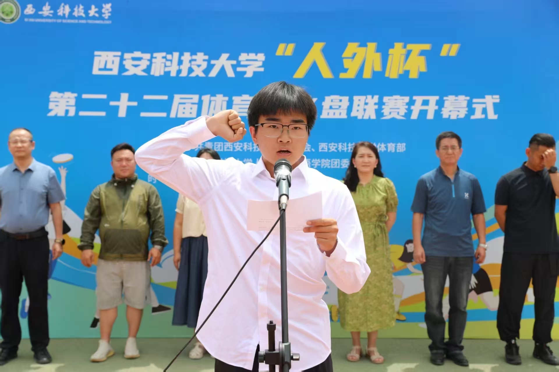 运动员代表袁岩松带领全体选手庄严宣誓,承诺将以“盘不落地,永不放弃”的信念投入赛事。