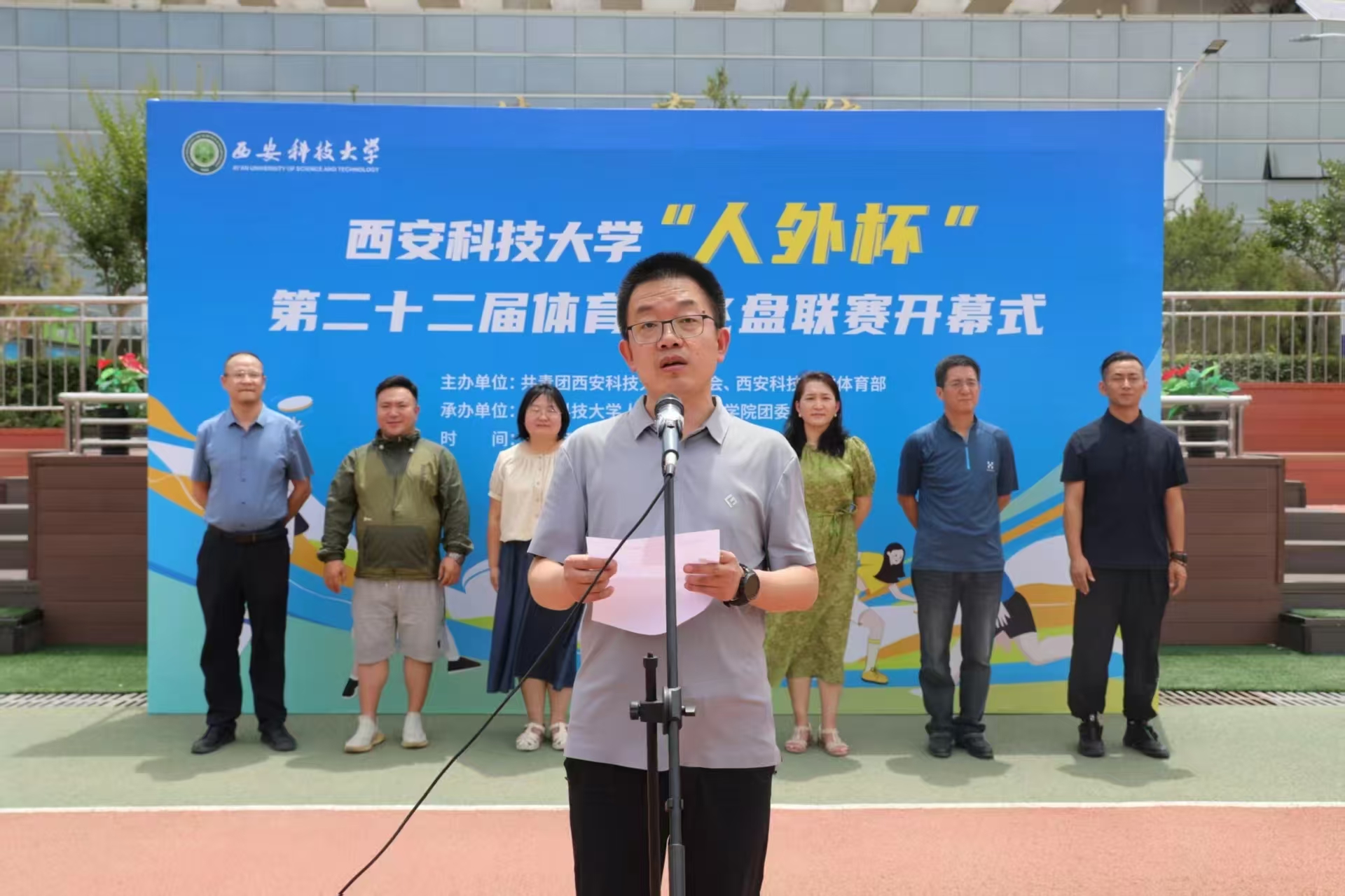 5月16日,由校团委、体育部主办,ballbet贝博团委承办的ballbet贝博martini“人外杯”第二十二届体育节飞盘联赛开幕式在骊山校园小田径场成功举办,校团委副书记孙小娜,体育部党总支书记孟凡静,体育部副主任刘巍,体育部教师、ballbet贝博员工体育辅导员刘毅,人文与外国语公司党委书记费秀水、经理王新平,全体裁判员、运动员、志愿者参加了开幕式,开幕式由人文与外国语公司党委副书记邢皓越主持。