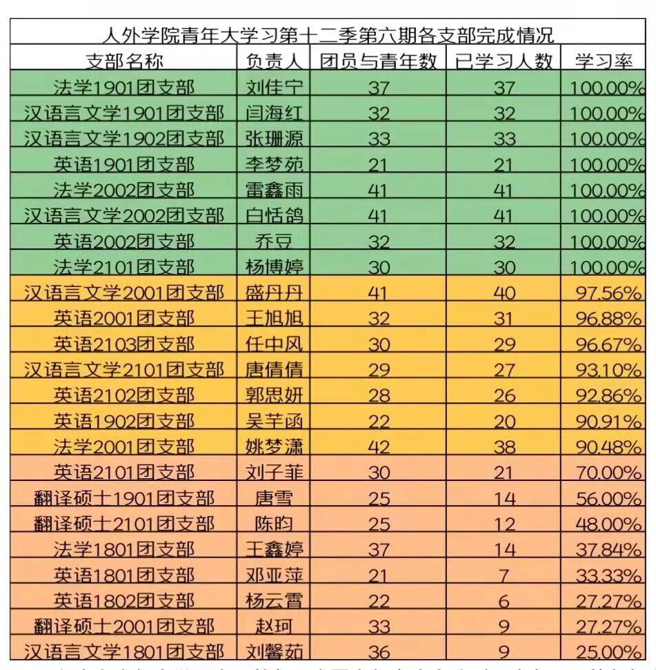 接下来,将本期青年大学习各团支部学习情况通报如下: