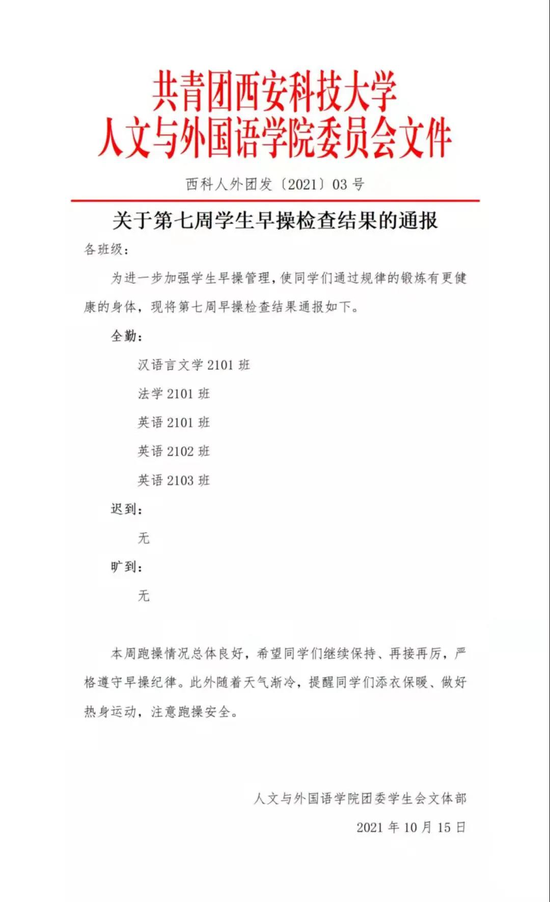 为增强员工的体质健康,和鼓励大家晨跑的积极性,公司相关部门进行督导,现将情况通报如下: