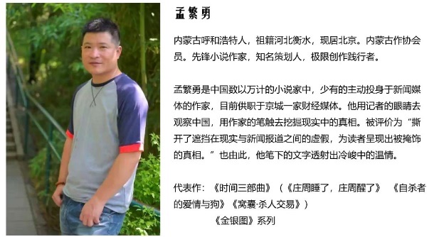 首先, 孟繁勇分享了他的创作观。他认为“时间轨迹、叙事视角”对文学发展有重要影响,叙述视角一定程度上限制创作,禁锢了文学发展,而“时间轨迹”可以打破这种创作禁锢。《金银图》系列是作家利用“时间轨迹”打破这种禁锢的成功尝试。
