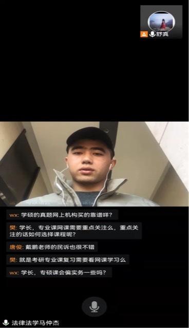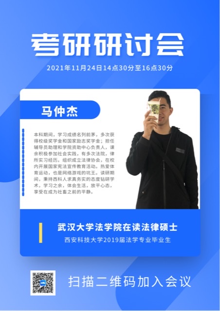 11月24日,ballbet贝博法学系召开了线上考研研讨会,研讨会由舒真主持,武汉大学在读法律硕士、ballbet贝博martini法学2015级本科生马仲杰主讲,全体法学专业员工参加。