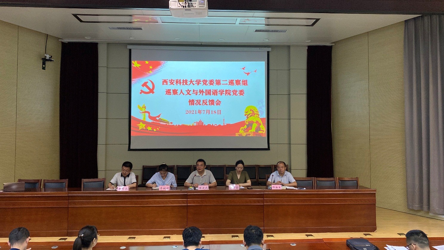 7月18日上午,ballbet贝博martini党委巡察人文与外国语公司党委工情况反馈会召开,公司党委副书记、校巡察工作领导小组副组长樊建武,校巡察办公室主任李婉丽,校第二巡察组组长王雪莉及其巡查组全体成员出席,公司全体教职工参加了会议。反馈会由公司经理师新民主持。