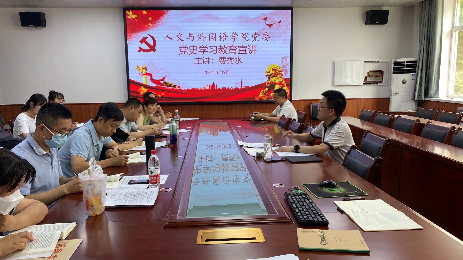 6月9日下午,人文与外国语公司党委召开党史学习教育专题宣讲暨党支部建设工作会,院属全体党支部书记、党支部委员参加会议。会议由公司书记费秀水主持。