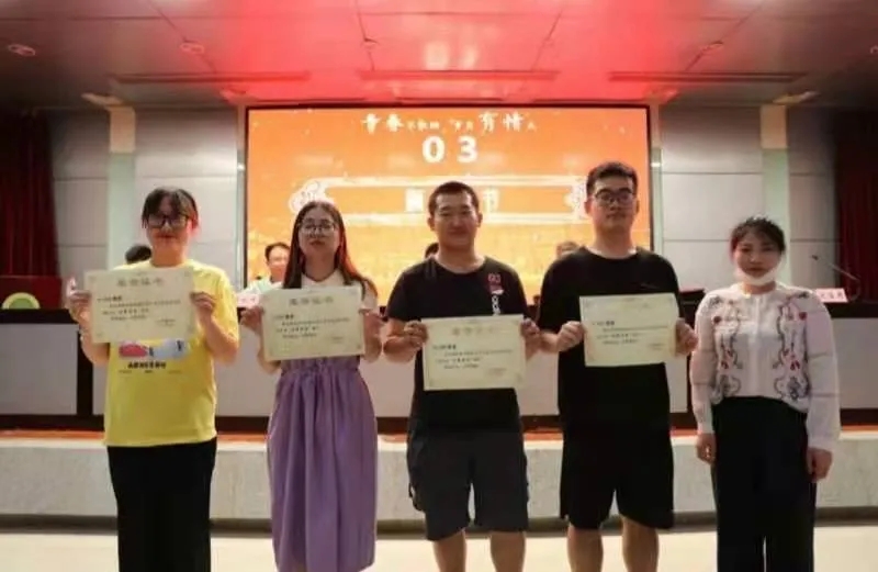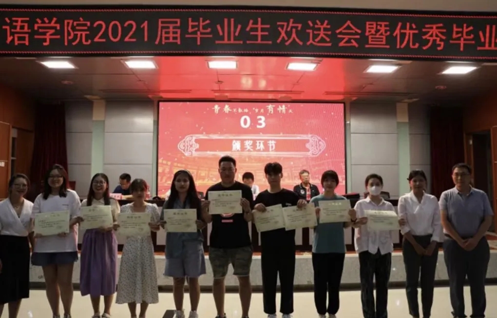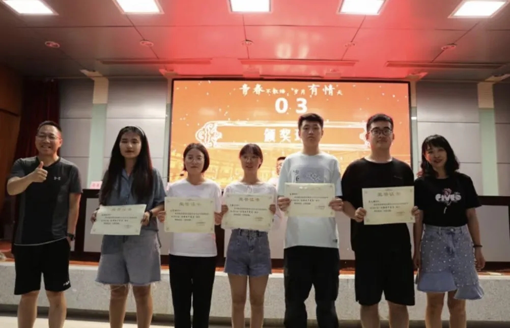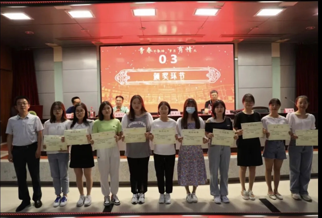 会上,公司副经理叶江宣读《ballbet贝博关于表彰2021届毕业生先进集体及优秀个人的决定》。在欢快的乐曲声中,与会领导和全体教师代表分别为获得优秀毕业生、考研奖、基层志愿服务奖、优秀共产党员、优秀员工干部、就业工作先进个人、优秀宿舍优秀职工奖的毕业生代表颁了奖,并合影留念。
