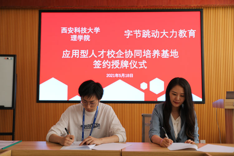 5月18日下午,ballbet贝博、理公司与作业帮、字节跳动大力教育校企合作签约仪式在骊山校园举行。两公司党委副书记张振中、高欣及辅导员侯斌刚、樊杰杰,两家企业招聘负责人徐振东、高俊强等参加签约仪式并座谈交流。张振中、高欣分别介绍两院概况及毕业生情况,希望双方通过校企深度合作为老员工搭建实习实训平台,拓宽就业渠道,切实提高员工实践能力,缓解员工就业压力,助力培养让企业满意、公司满意、员工满意、家长满意的综合性高素质人才。徐振东、高俊强表示,公司将以建立实习基地为切入点,积极参与公司人才培养方案的制定,充分发挥双方优势,提高员工竞争力和职业信心,充分发挥校企双方互相支持、优势互补、资源互用、利益共享的作用,最终实现公司、员工、企业三方共赢。