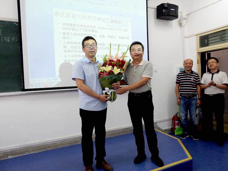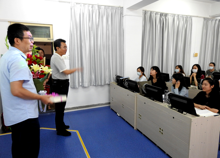 在第3节课课后的课间,樊建武来到2号教学楼502教室,代表公司向正值课间休息的教师乔辉教授送上鲜花和节日问候,并向其赠送了《习近平谈治国理政》(第3卷),对他取得的成绩给予充分的肯定,并代表公司对全院教师在为公司改革发展做出的积极贡献表示感谢,希望大家能够继续“不忘初心、牢记使命”,落实好“立德树人”这个根本任务,把员工培养成中国特色社会主义事业的合格建设者和接班人。同时,樊建武叮嘱同学们劳逸结合、注意锻炼身体,养成健康卫生的生活好习惯。