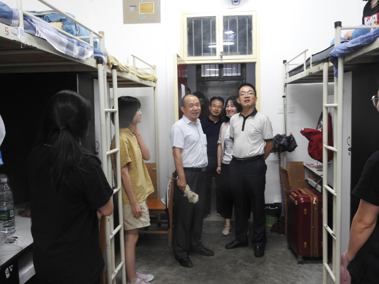 9月9日下午,人文与外国语公司党委书记费秀水、经理师新民、党委副书记张振中在公司团委书记、2020级员工辅导员张晶晶的陪同下看望慰问了2020级新生。
