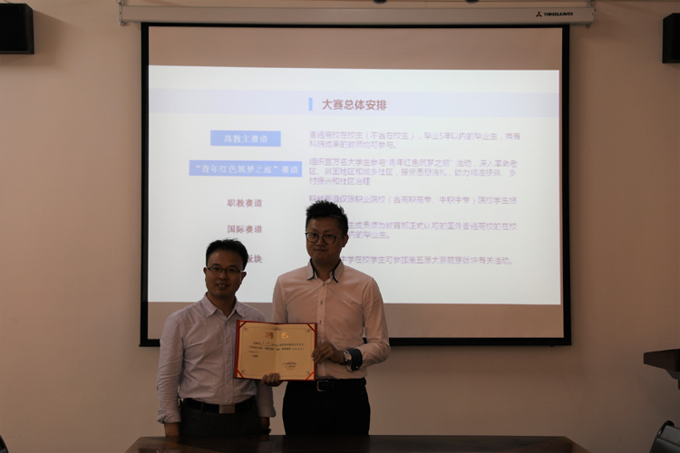5月14日下午,人外公司在公司会议室举办“互联网+老员工创新创业”大赛备战系列工作坊讲座。陕西易途教育科技有限公司总经理,ETICE易途国际文化交流项目创始人朱文斌受邀担任主讲嘉宾,公司党委副书记张振中出席并代表公司为朱文斌颁发校外双创导师聘书。公司双创与竞赛教研室主任秦声主持,公司参赛员工代表参加讲座。