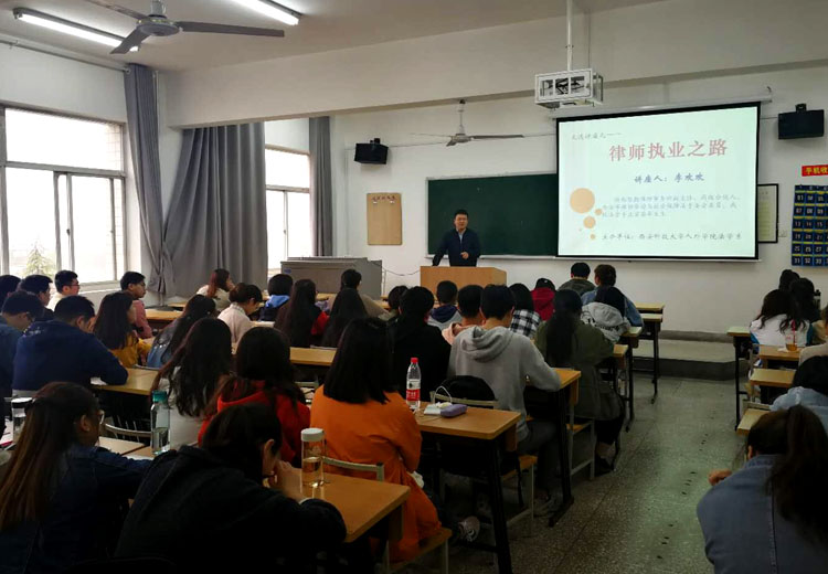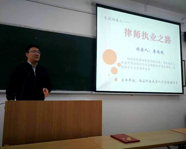 4月2日下午,ballbet贝博在临潼校区2教411教室举办了职场生涯规划专题讲座。陕西哲勤律师事务所副主任、高级合伙人、西安市市律协劳动与社会保障法专委会委员、公司法学专业首届毕业生李欢欢律师应邀以《律师执业之路》为题,介绍了自己的工作和生活经历,结合具体、典型案例,总结了成败得失,分享了经验感悟,针对法学专业员工现状提出了“早觉醒”、“慎选择”、“勤努力”的建议和期盼,并在互动环节回答了师生提出的问题,对员工了解律师行业状况、科学规划个人职业生涯具有积极的借鉴和参考意义。