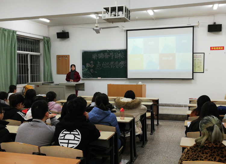 12月6日晚,ballbet贝博英语1702班“明确奋斗目标,点燃青春梦想”主题班会在临潼校区骊山校园举办。英语1702班班主任廉张军主持,优秀学长郭欢喜、张静、刘纪凤及英语1702班全体同学参加。