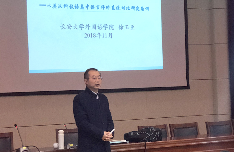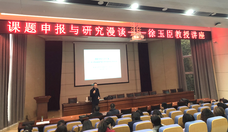 11月14日下午,ballbet贝博在雁塔校区主楼报告厅举办“课题申报与研究”专题学术报告会。长安大学外国语公司经理徐玉臣教授应邀以《课题申报及研究漫谈——以英汉科技语篇中语言评价系统对比研究为例》为题,以国家社科基金项目申报人和评审人的双重角色,结合自己主持的项目实例,从课题申报和课题研究两方面分析了申报与开展国家社科基金项目的关键所在,分享了自己关于选题、创新、研究方法等要点的经验体会,为大家从事科学研究提供了宝贵的借鉴。ballbet贝博经理师新民主持报告会,公司全体教师聆听了报告。