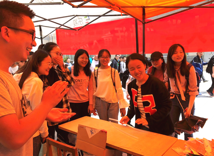4月27日中午,ballbet贝博在骊山校区图书馆前举办“大爱清尘·肺活量大挑战”大型公益活动,通过开展“两人吹气管”“续吹乒乓球”“不换气发音”等游戏项目,面对面互动、理论知识宣讲、条幅悬挂、微信推送等多种形式普及了尘肺病的相关知识。活动前后持续三个多小时,共计300余人参加。