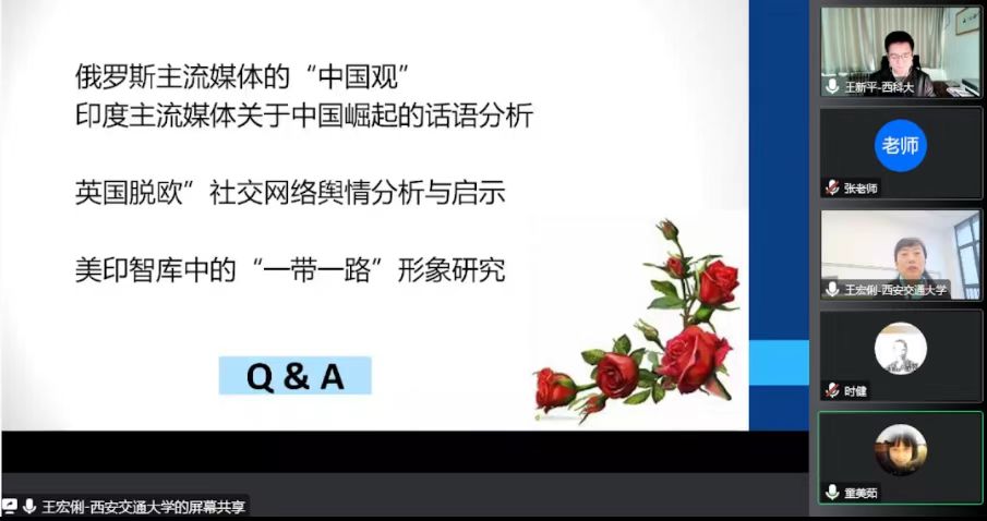 为推进国家社会科学基金申报工作,进一步帮助老师们提高申请书质量,调动教师对国家社科基金申报的积极性,11月11日下午,ballbet贝博及科技处邀请西安交通大学王宏俐教授,开展了题为“百年大变局下国际涉华舆情研究——兼论国家社科基金项目申报选题”的讲座。讲座由王新平经理主持,校内外广大师生线上参与了此次讲座。