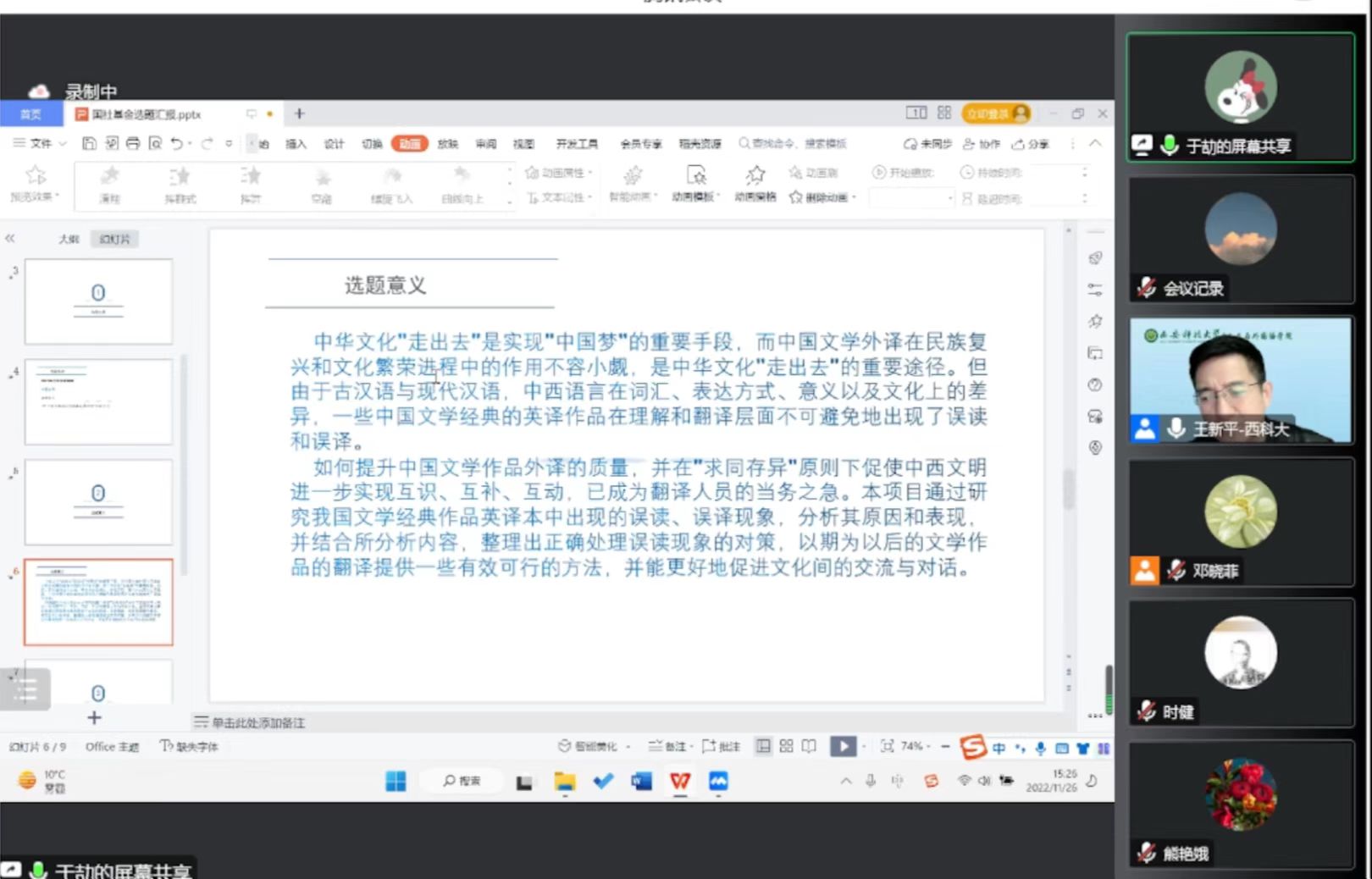 此次会议中,项目申报负责人与四位专家历时近3个小时进行持续深入的交流研讨,明确了项目申报的选题细节、论证思路,帮助各位项目负责人进一步完善申报书质量。