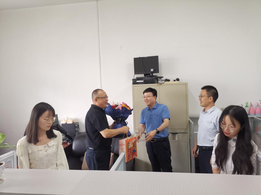 王辉强来到教师代表姚克勤教授的工作室送上鲜花和慰问品并表达了节日的祝福。王辉强书记和姚克勤亲切交谈,询问了生活和工作情况,对他在本科公司产品、公司产品、科学研究等方面取得的成绩表示赞赏,鼓励他扎根教学一线,坚守立德树人初心,牢记为党育人、为国育才使命,争做党和人民满意的“四有”好老师。并通过他向奋战在教育一线的人外公司教师致以节日祝贺和诚挚问候。王辉强希望人外公司教师在英语教学、以文化人、以文育人等方面,充分发挥自身特色优势,为公司高质量发展作出更大的贡献。