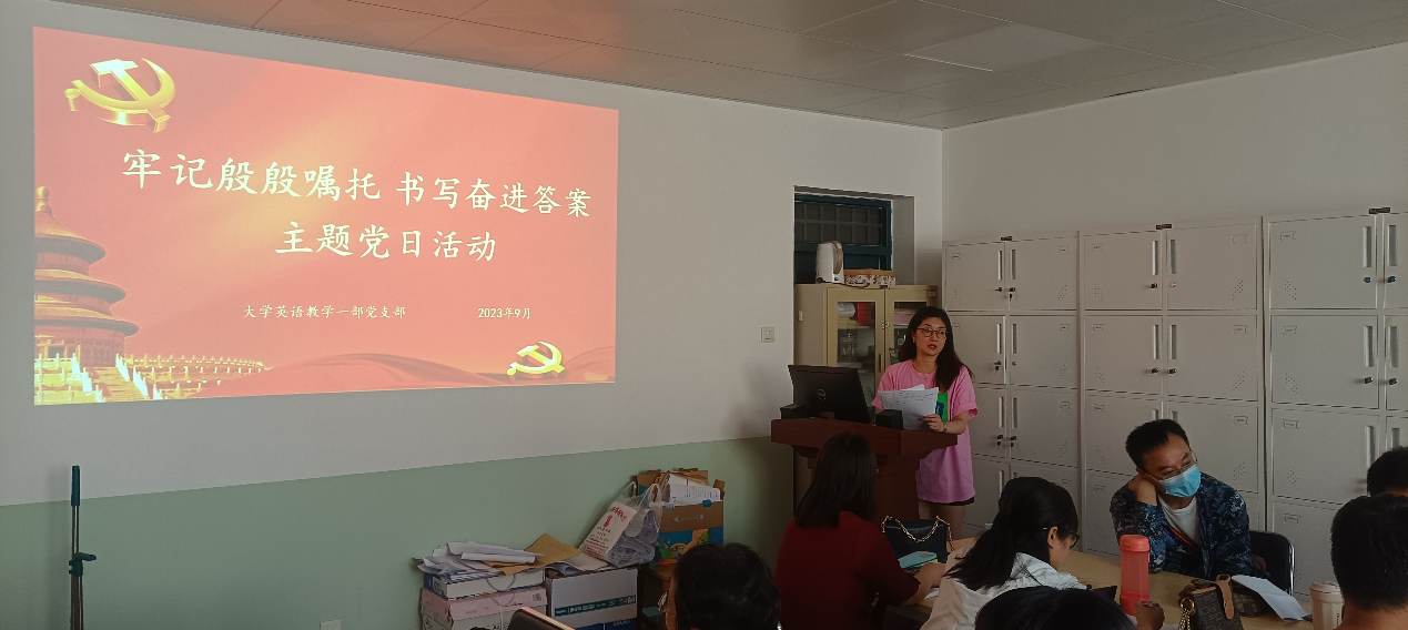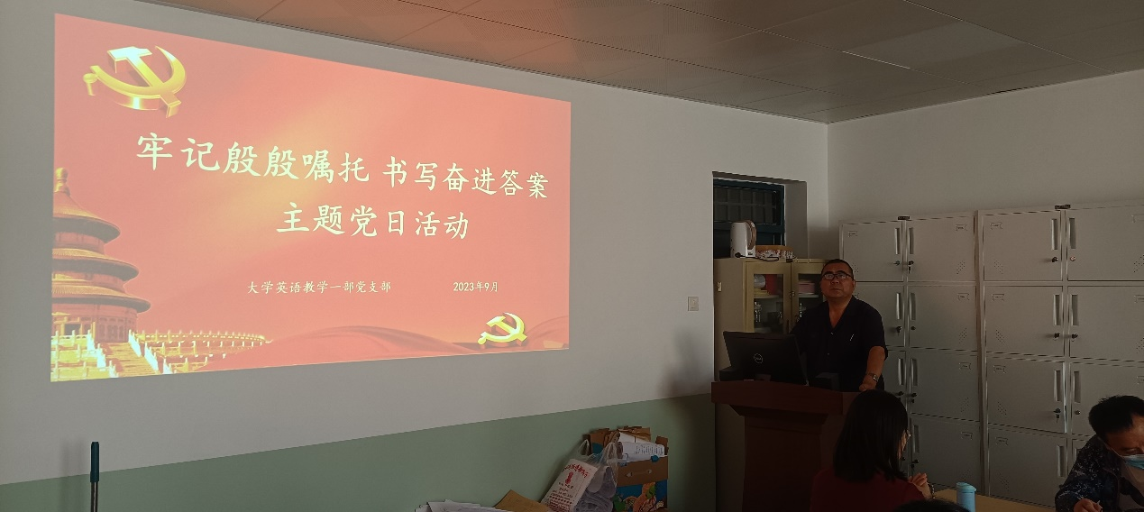为深入学习宣传贯彻习近平总书记在听取陕西省委和省政府工作汇报时的重要讲话精神,扎实推进学习贯彻习近平新时代中国特色社会主义思想主题教育走深走实, 9月14日下午,大学英语教学一部党支部组织全体教师,开展“牢记殷殷嘱托 书写奋进答案”主题党日活动。党支部书记张剑锋主持活动。