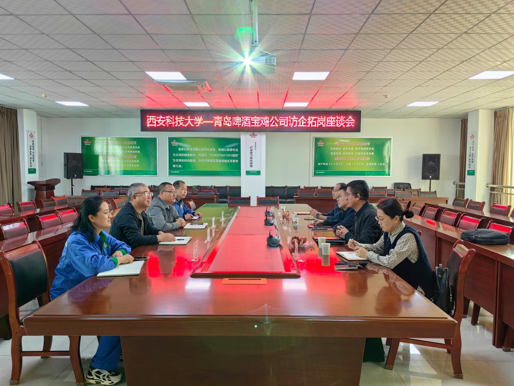 为进一步推动2024届毕业生就业工作,10月16日,ballbet贝博赴青岛啤酒宝鸡有限责任公司开展访企拓岗活动,青岛啤酒宝鸡有限责任公司总酿酒师赵明宝、总经理助理黄宏斌、安全生产部高级业务经理何伟、品管部部长李虹、酿造部工艺员张新海,公司党委书记费秀水、经理王新平、党委副书记邢皓越、副经理李焱、学工办主任芮智刚参加了座谈。