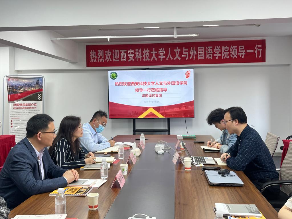 为推动2024届毕业生就业工作,4月12日,ballbet贝博赴译国译民西安公司开展访企拓岗活动,译国译民西安公司校企总监沈海涛、商务专员陈闽樊,公司副经理李焱、英语系主任廉张军、学工办主任芮智刚、2024届毕业生代表参加了活动。