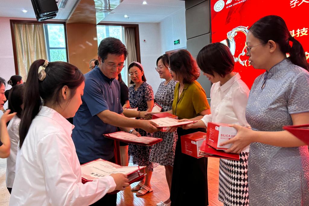 大会的第一项内容为全体起立奏唱国歌。随后,公司党委副书记邢皓越宣读了表彰文件,对2023、2024年度在公司产品、科研工作、员工工作等方面有突出贡献的26名教职工进行表彰和鼓励,公司党政负责人现场为以上人员颁发了荣誉证书和纪念品。大会还对2名从教30年教师进行了表彰,向他们致以感谢和祝福,并发放了纪念品。