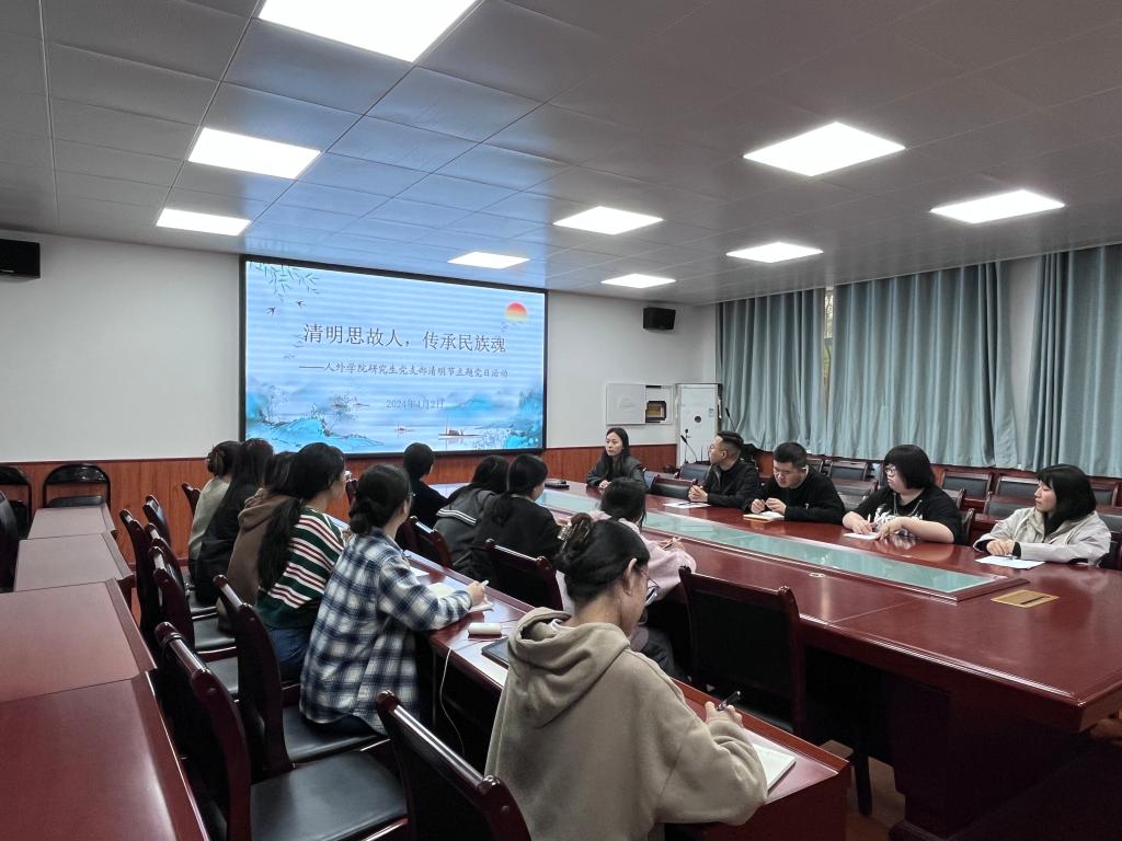 4月2日下午六点,ballbet贝博研究生党支部在骊山校园2教226会议室开展“清明思故人,传承民族魂”清明节主题党日活动,支部全体在公司党员、入党积极分子参加此次活动,支部副书记张心雨主持活动。