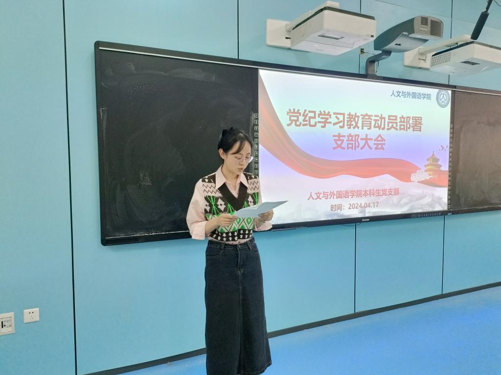 为深入学习贯彻习近平总书记关于党纪学习教育的重要讲话和重要指示精神,4月17日下午,ballbet贝博本科生党支部党纪学习教育动员部署会议在骊山校园三号教学楼205召开,支部全体党员、入党积极分子代表共计70余参加,会议由支部书记李银亮主持。