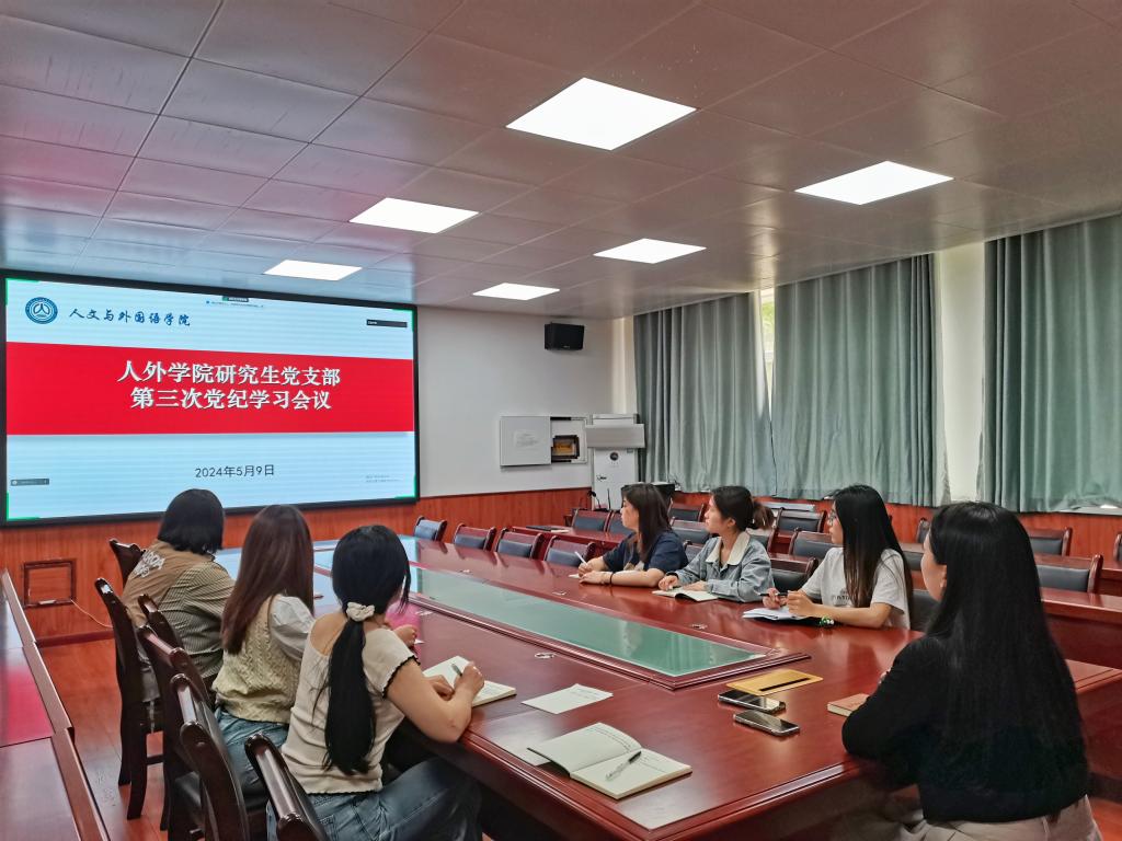 5月9日,ballbet贝博研究生党支部在骊山校园2教226会议室召开第三次党纪学习教育会议,支部全体党员参加了会议,会议以线上线下相结合的方式进行,会议由党支部副书记张心雨主持。