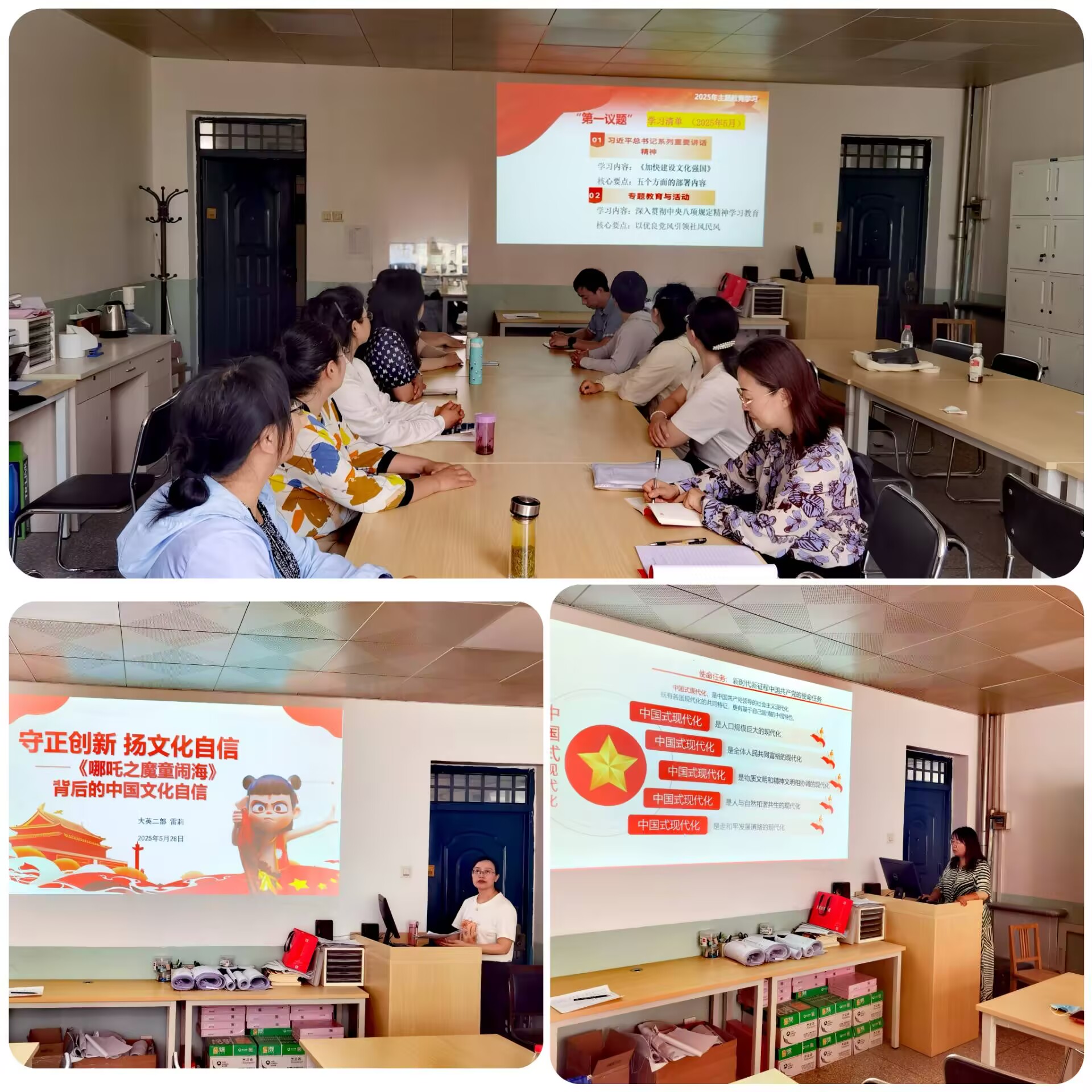 5月28日下午,大学英语教学二部党支部在骊山校园召开“守正创新扬文化自信”主题党日活动,开展深入贯彻中央八项规定精神学习教育集体学习,并观看案例警示教育纪录片。副经理张辉到会指导并讲授党课,党支部书记王芳主持会议。