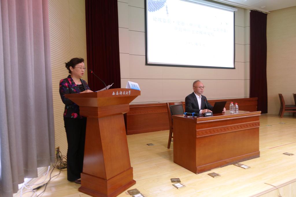 第二场主旨报告由长安大学外国语公司经理冯正斌教授主持。主讲嘉宾河南大学张璟慧教授的报告题目为:“以‘化’成天下——20世纪法国哲学对英美理论界的影响”。张教授通过追本溯源发现,当今英美理论的重要源头正是20世纪下半叶的法国哲学;认为20世纪下半叶的法国哲学极大地影响了英美哲学及文论,探讨20世纪英美理论的渊源具有重要的意义与价值。