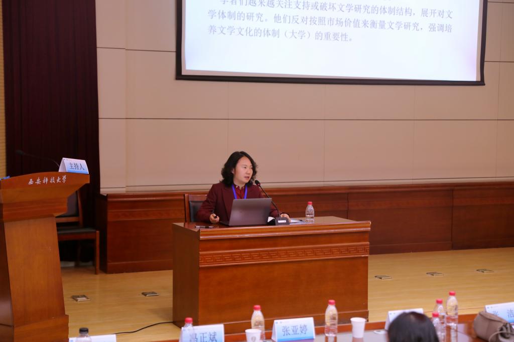 第三场主旨报告由陕西师范大学外国语公司博士生导师张亚婷教授主持。主讲嘉宾西安外国语大学芮小河教授的报告题目为:“当代英美文学研究的‘体制转向’”,芮教授首先介绍了自20世纪90年代起,英美文学研究从传统以文本为中心的分析转向对文员工产过程的参与者以及围绕这些参与者所形成的各种组织机构和网络的研究,包括编辑、书商、书评人、出版社、期刊、文学奖、图书俱乐部、高等教育机构、数字平台等社会现象,提出了文学研究的“体制转向”(Institutional Turn)这一新概念,认为研究者们分析文学与塑造文学的各种体制之间复杂的相互作用的目的在于揭示影响文员工产的驱动力和权力结构,并力图在日益被新自由主义意识形态所主导的西方社会中捍卫文学研究的价值。芮教授强调,英美文学研究的“体制转向”整合文学研究与社会学、经济学、媒体和数字研究等学科的跨学科视角,不但拓展了文学的研究视野,在文学研究方法上进行创新,而且在应对当前文学研究乃至人文学科所面临的挑战方面进行了有益的尝试。